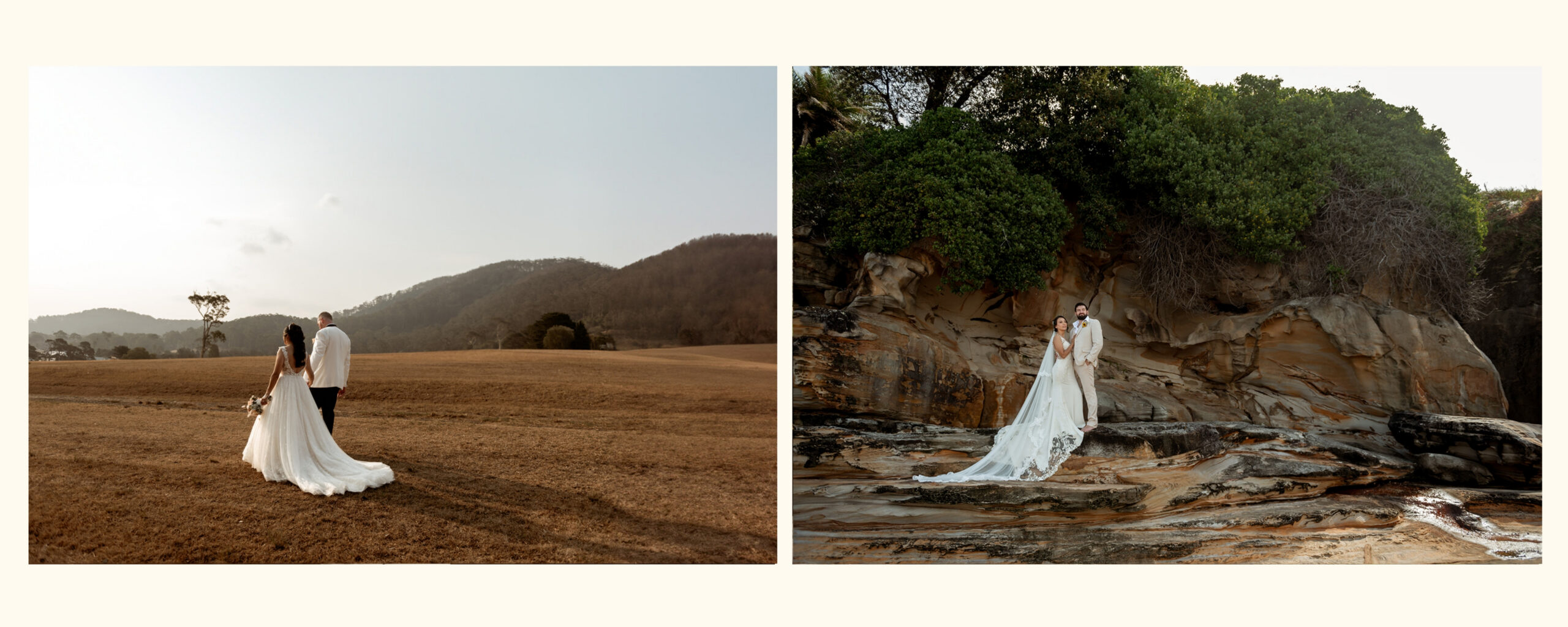 Sydney is a big city with a huge range of venues, from the sandstone grandeur of the CBD and the harbourside elegance of venues like Gunners Barracks, to the relaxed coastal feel of beaches in the south, to the lush garden settings of the inner suburbs. Beyond Sydney, regions like the South Coast, including Berry, Kangaroo Valley, Jervis Bay, and Kiama, and the Blue Mountains offer entirely different light, terrain, and atmosphere.